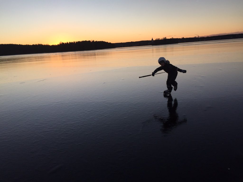 En härlig vintervecka i Nora med snö, is, bebis, hundvalp, familj och släkt. Vi inledde noravistelsen tredjedag jul med en kusinträff och även om barnens kusiner var närvarande (så när på Ida som dröjer kvar i Nepal några veckor till) så var det mina kusiner som har småbarn som samlades. Sedan följde några dagar där vi njöt av att isen låg som en spegel och att både pulkabacken och skidspåren (Tack Kurten) ligger precis utanför dörren. Jag tror dock att pulkaåkning är den aktivitet som både jag och barnen njuter mest av tillsammans. Då räknar jag inte bara in ovanstående vintersporter utan allt man kan tänkas hitta på med sina barn. Varken min fru eller jag älskar rollekar och tröttnar fort på många av barnens lekar och försöker fly in i något tråkigt vuxengöra. Men när vi åker pulka njuter både jag och barnen i fulla drag 🙂 Tyvärr finns inga kort att dela då telefonen dog för att aldrig mer vakna) under pulkaåkningen pga fukt 🙂