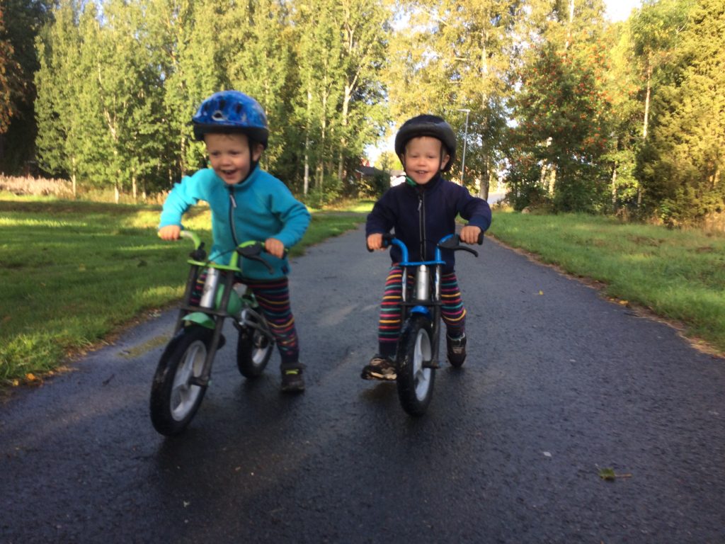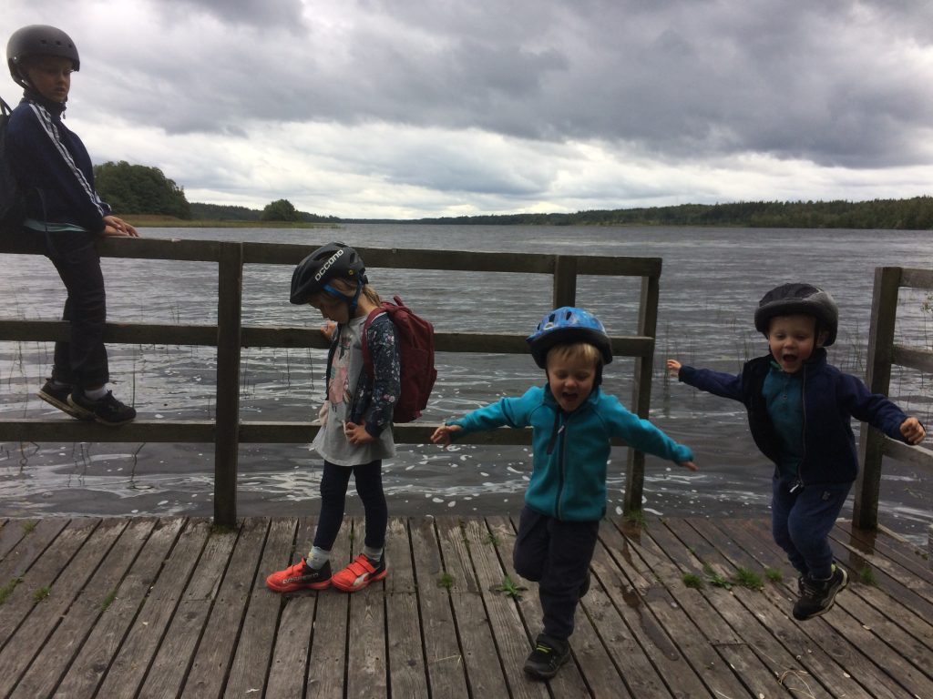 En del av vår vardag innehåller lämnande och hämtande på förskola och skola. Det kan vara väldigt varierande hur upplevelsen av dessa aktiviteter är både för barn och föräldrar. Inte minst beroende på vitt skilda omständigheter som t.ex. lugn eller stressig morgon, pigga eller trötta, glada eller ledsna, trallande eller skrikande barn och vuxna ? Dessutom varierar de yttre förutsättningarna från sol och fågelkvitter, regn och snålblåst, kyla, frost, dimma, snö, åska och drivis. Och då vi lever mer efter devisen att omväxling förnöjer än att rutiner är viktiga för barnen så växlar fordonen mellan cykel, lådcykel, cykelvagn, cykelbarnstolar, bil, kanot och apostlahästar. Nu har jag haft ett par underbart mysiga både lämningar och hämtningar med gott om tid, glada barn och fina små utflykter ❤️