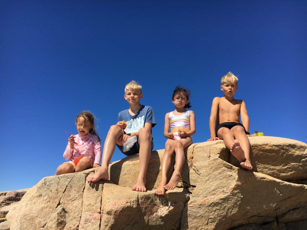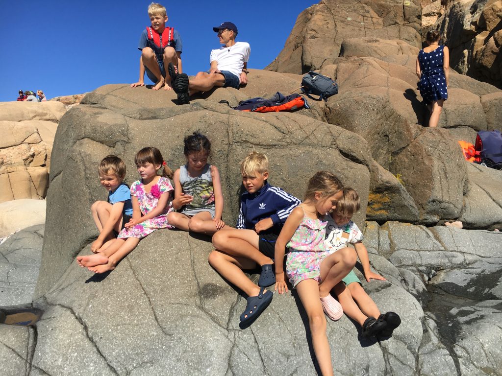 Två härliga veckor med kusiner, sysslingar, morbröder, mostrar och familj ❤️ Så gott att få dela livet under avslappnade former med strandlek, krabbfiske, kockholmsutflyker, blåbärsplockning, murning och så den obligatoriska kvällsgrillningen. Vi gjorde även en spännande utflykt till Nordens Ark och hällristningarna i Tanum. Vädret har bjudit på sol och regn, värme och kyla, vind och stiltje. Så tacksam att vi får vara här och njuta av allt det vackra och umgås med nära och kära. Höjdpunkten var nog när vi tillsammans med syster med familj och ett par sysslingar var ute på ”Stenön” och njöt av skådespelet när dyningarna rullade in mot klippor och stenar ?