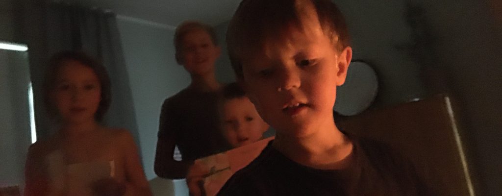 Blev väckt, eller låg i alla fall kvar och väntade i sängen eftersom jag redan väckts av några skrikande barn, av fyra härliga ungar med teckningar, presentkort på utflykt och mycket kärlek. Tacksam att vara far till våra fina, livfulla och ljuvliga barn. Helgen innehöll både äppelplockning, väggrivning, utflykt, grannfika och gemenskap. Vi lever så…